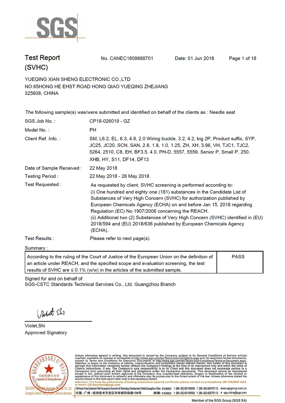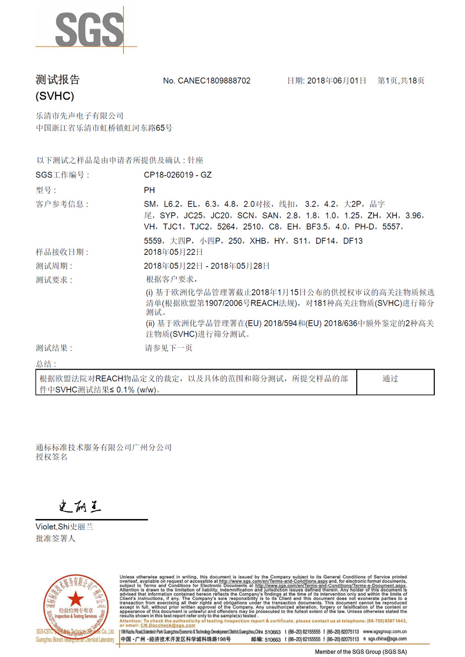 SGS環(huán)保認(rèn)證報(bào)告