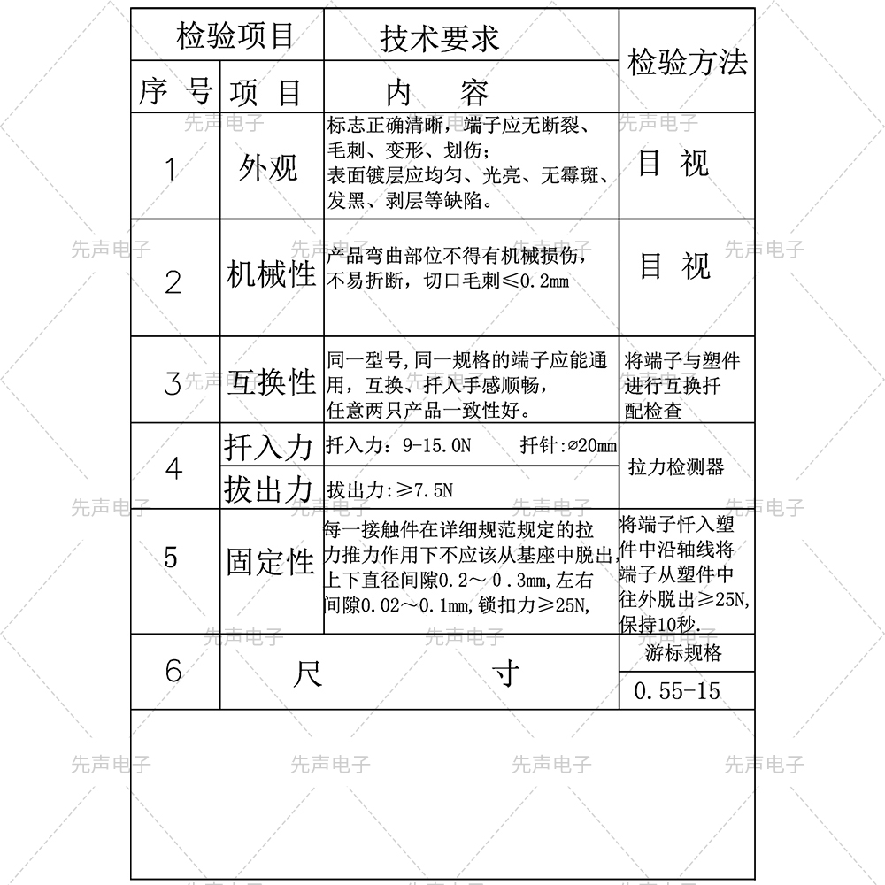 端子規(guī)格書